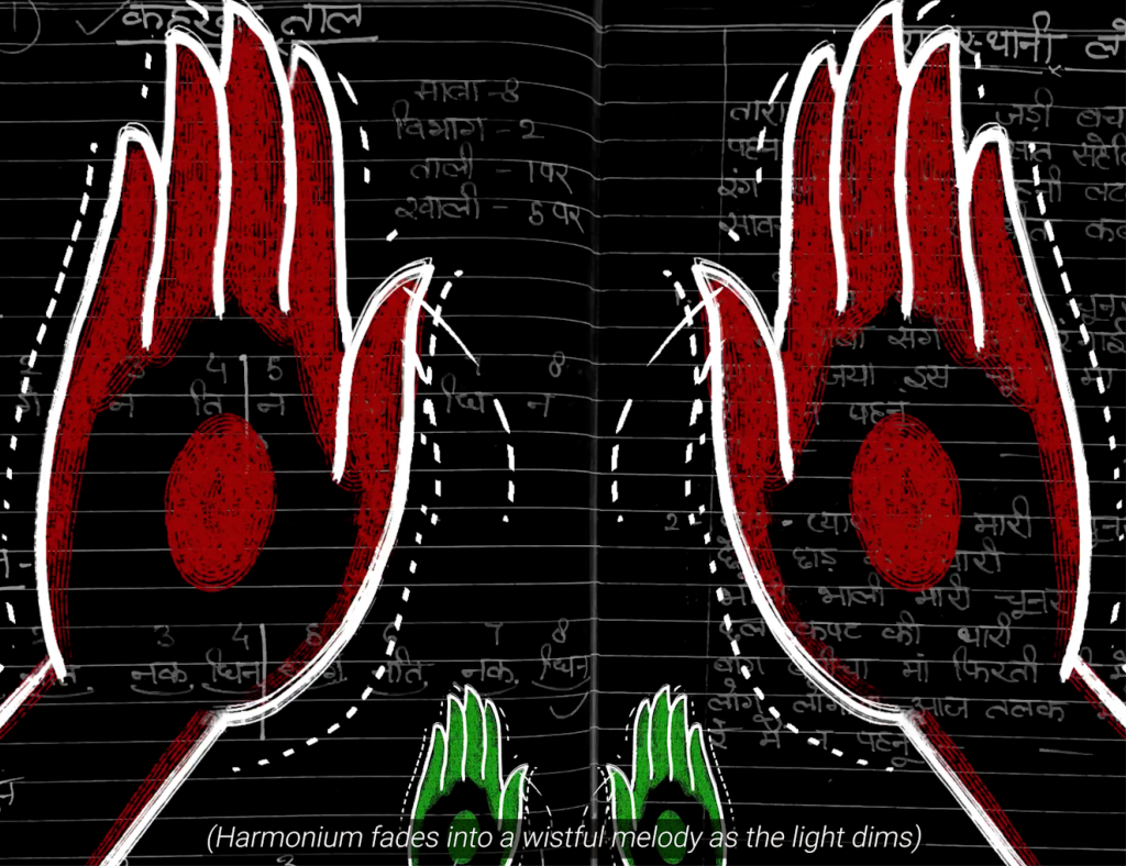 Veins of Grace is an experimental mixed-media animation that blends the Indian classical art of Kathak with a deeply personal narrative of memory, identity, and return. Told without dialogue—through the evocative sounds of ghungroos, harmonium, and traditional bol (verbal beats)—the film follows a young woman estranged from her cultural roots, drawn back to the rhythms once passed down by her mother, her first guru. As modern life fractures her connection to self and tradition, she seeks refuge on a quiet terrace at sunset, where memories begin to dance through shadow and silence. A sensory meditation on loss and rediscovery, Veins of Grace reflects on how the sacred essence of home and heritage lives on in the body, waiting to be remembered. Through each beat, each chakkar (round), the film becomes a quiet prayer—an act of becoming.